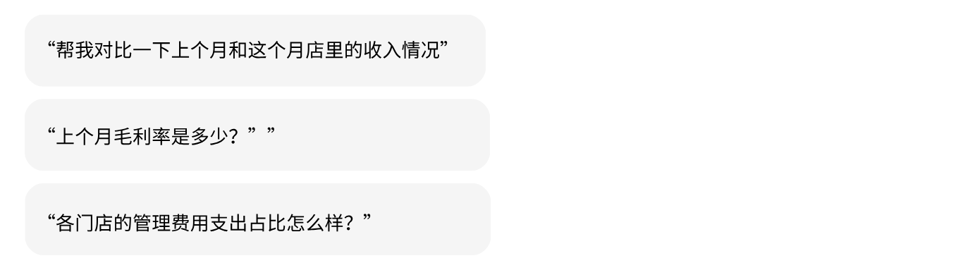 这是餐饮行业首家推出的AI智能体(AI Agent),专为已开通云财务系统的餐饮企业客户打造。它通过大模型技术,实现财务数据的“对话式”查询与解读,让复杂的财务报表分析化繁为简,赋能企业从传统财务模式向智能化转型,辅助餐饮企业管理者高效决策。