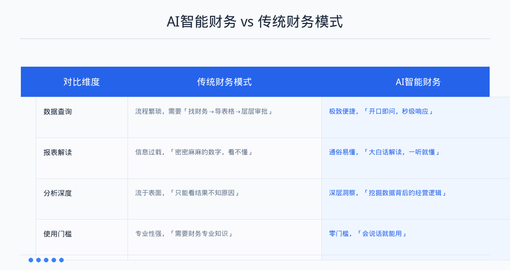 过去,管理者想看数据,往往需要财务人员层层导出、制表,耗时耗力。现在只需像发微信一样提问,就能快速获取精准数据。